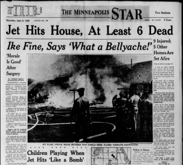 Bottom Image: June 9, 1956 Navy Jet Crash aftermath – Minneapolis, MN