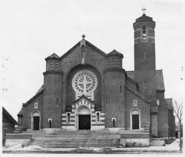 Top photo: St. Andrews Catholic Church in St. Paul circa 1930 (MHS)
